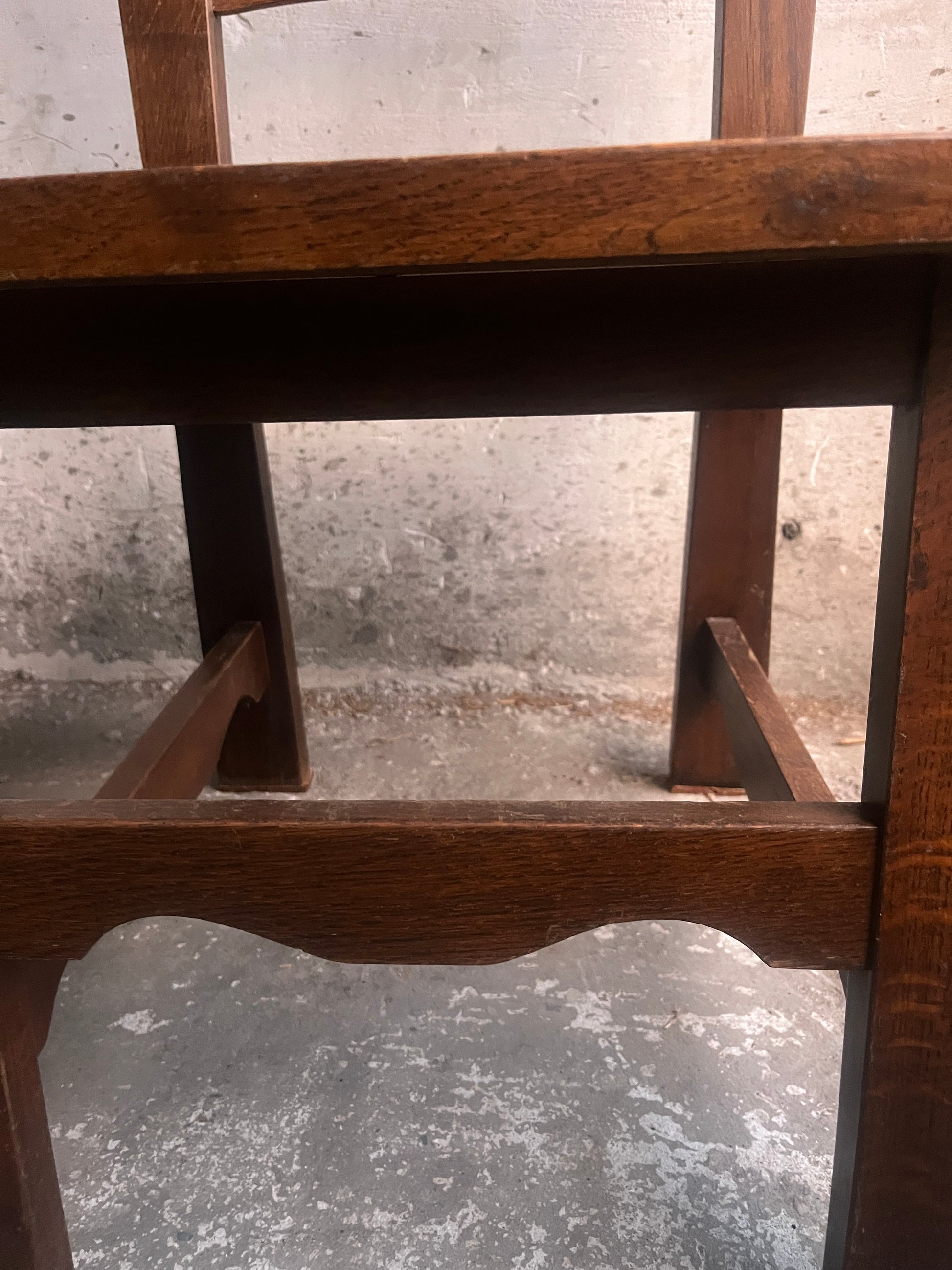 These chairs combine sturdy construction with a warm, authentic patina. The slatted seat and bold silhouette create a timeless character, while the traditional wooden peg joints enhance stability and charm. All chairs are solid, heavy, and built to last—ideal for everyday use.
