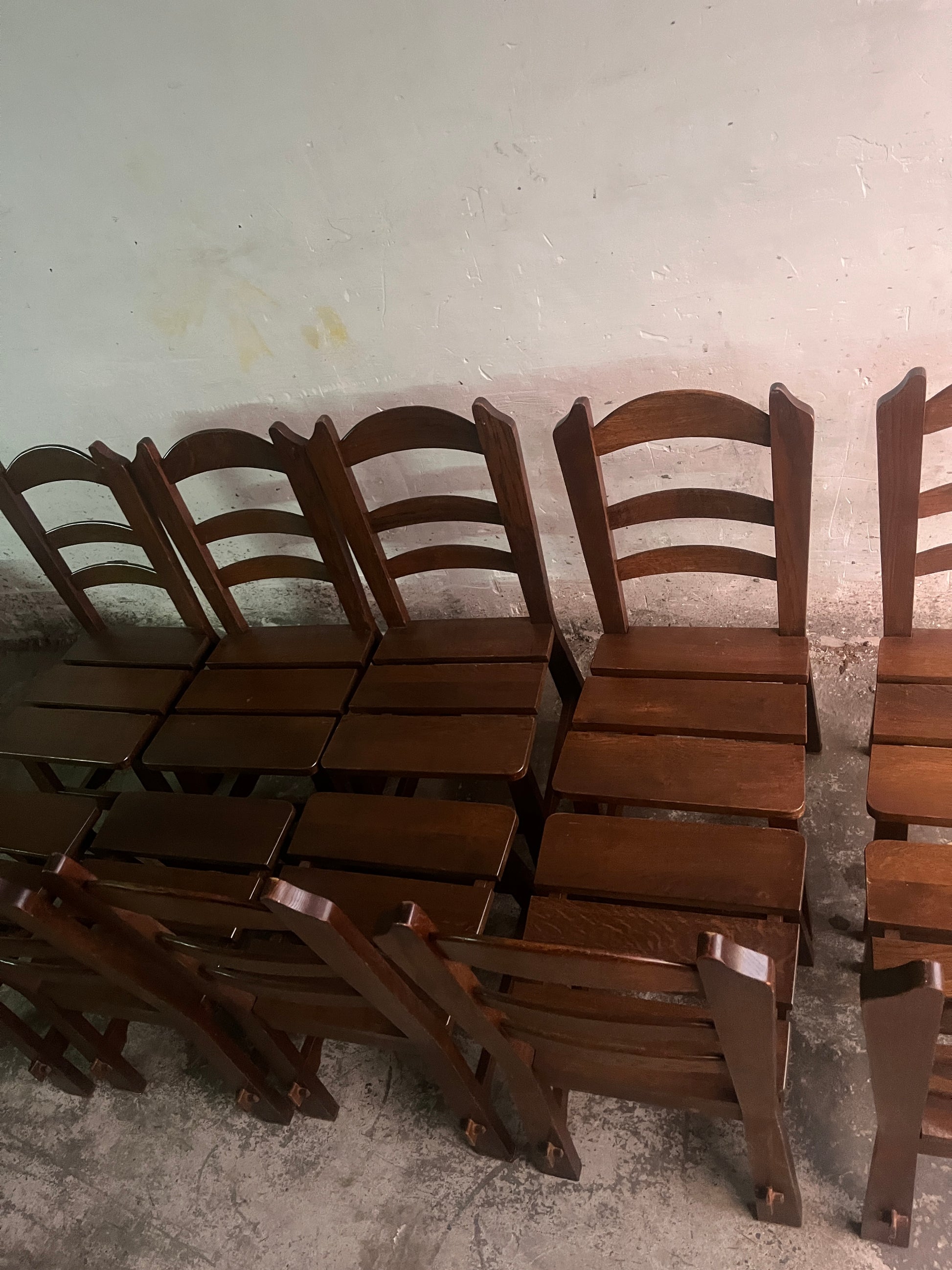 Brutalist Wooden Chairs – Set of 10 (1970s)