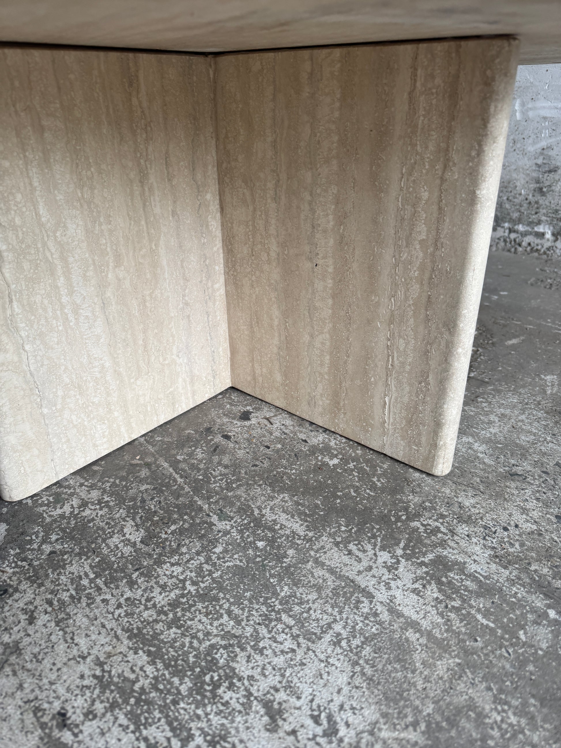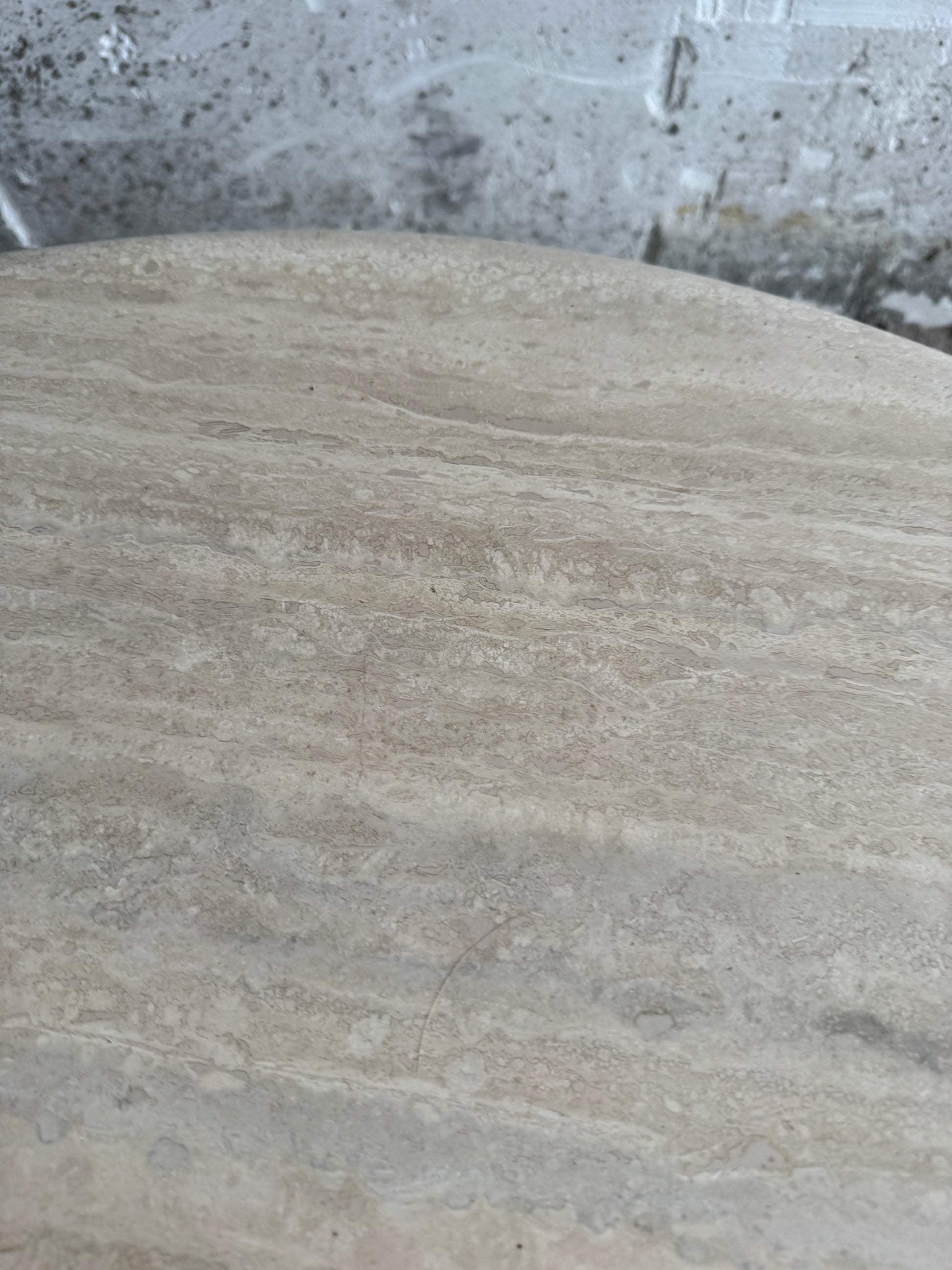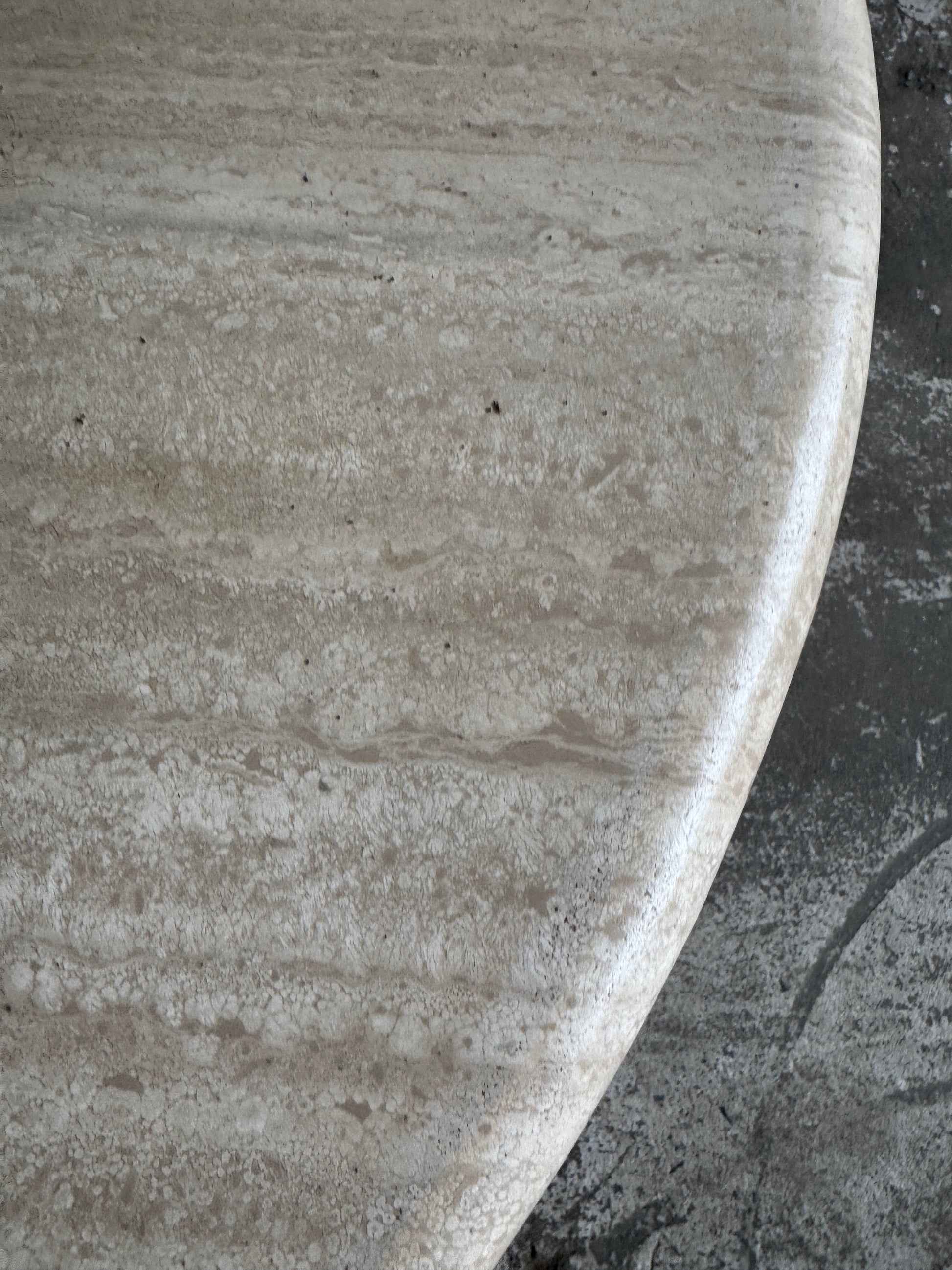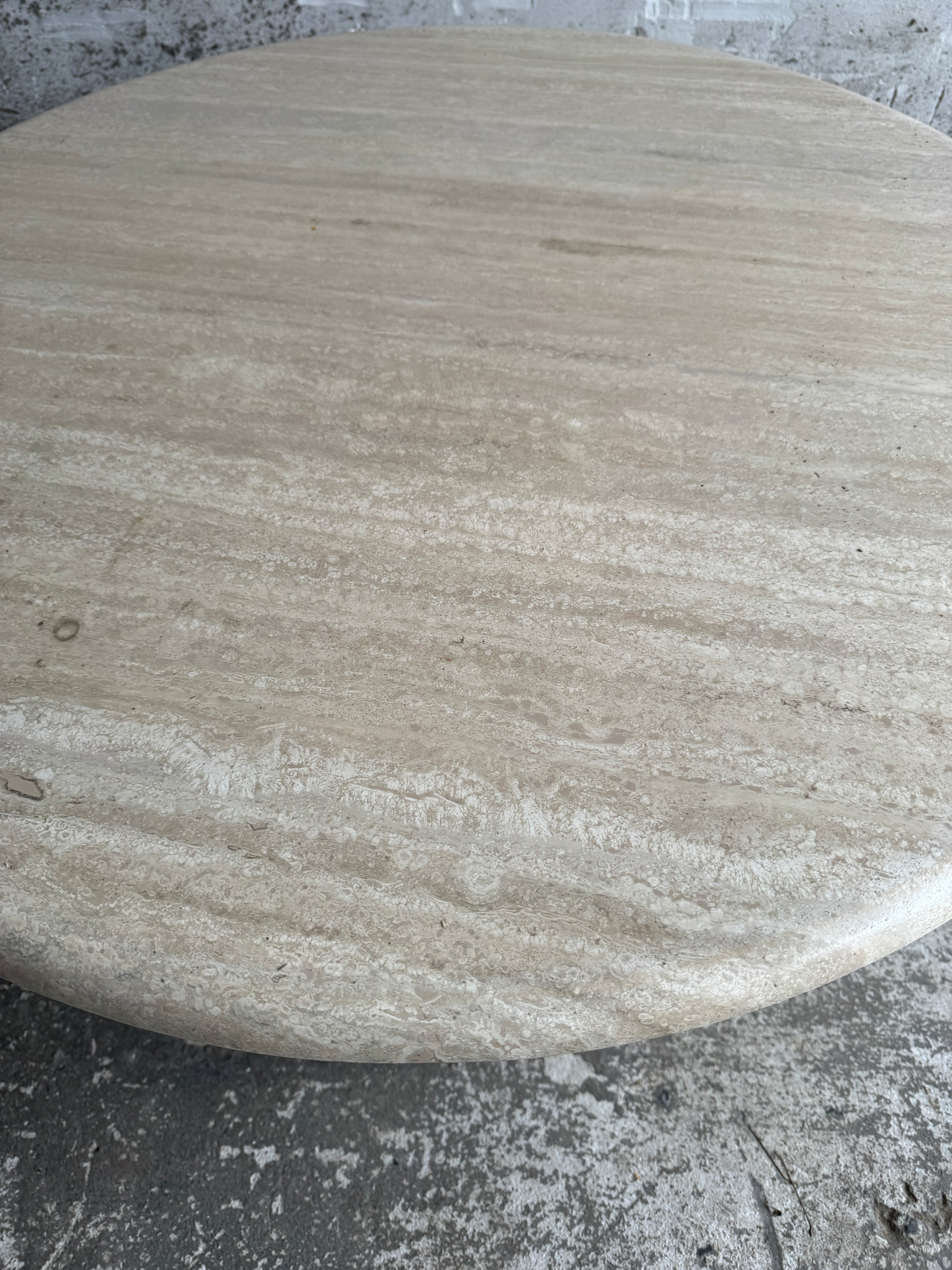 Table basse ronde en travertin – Style moderniste italien, années 1980