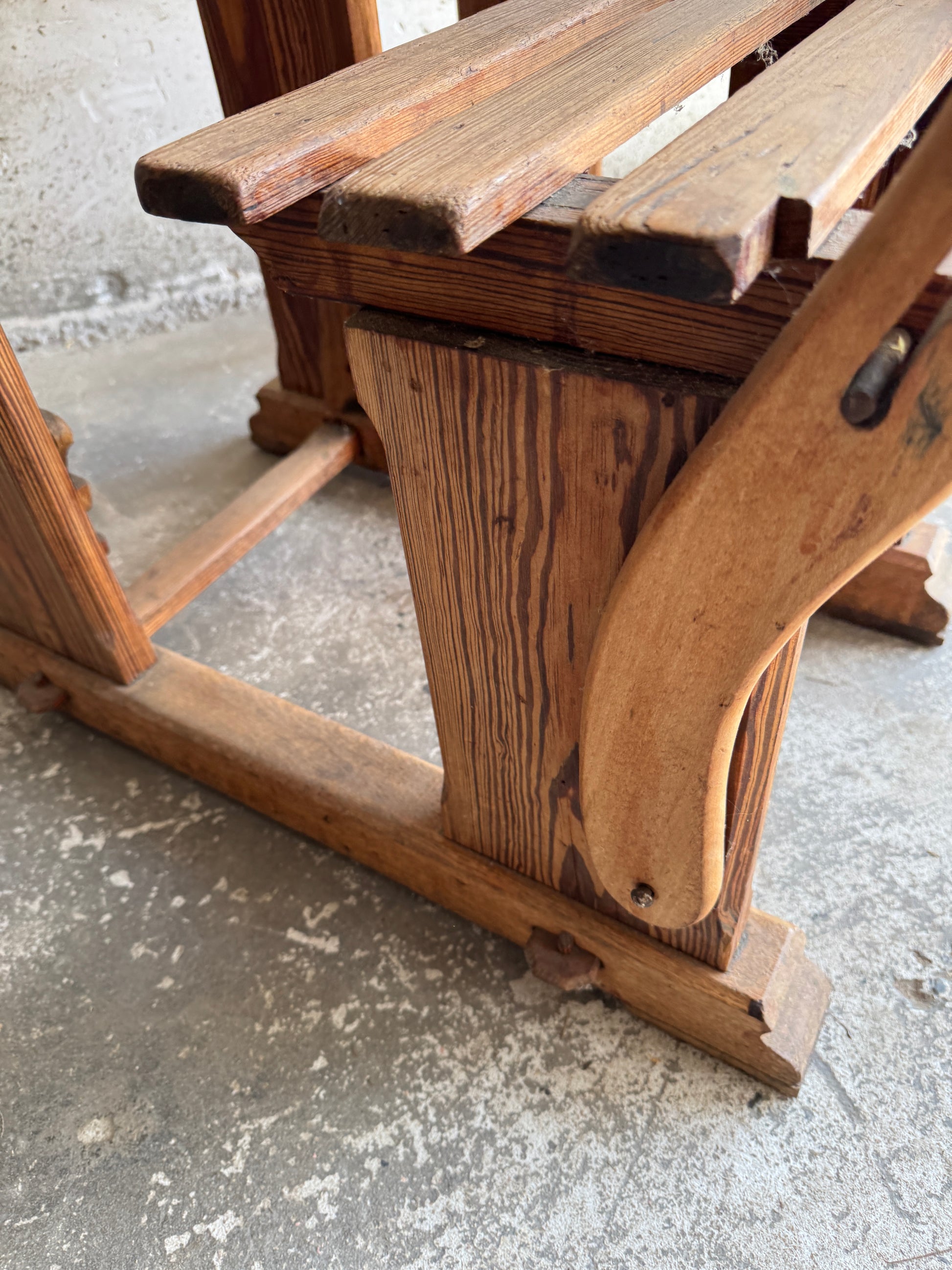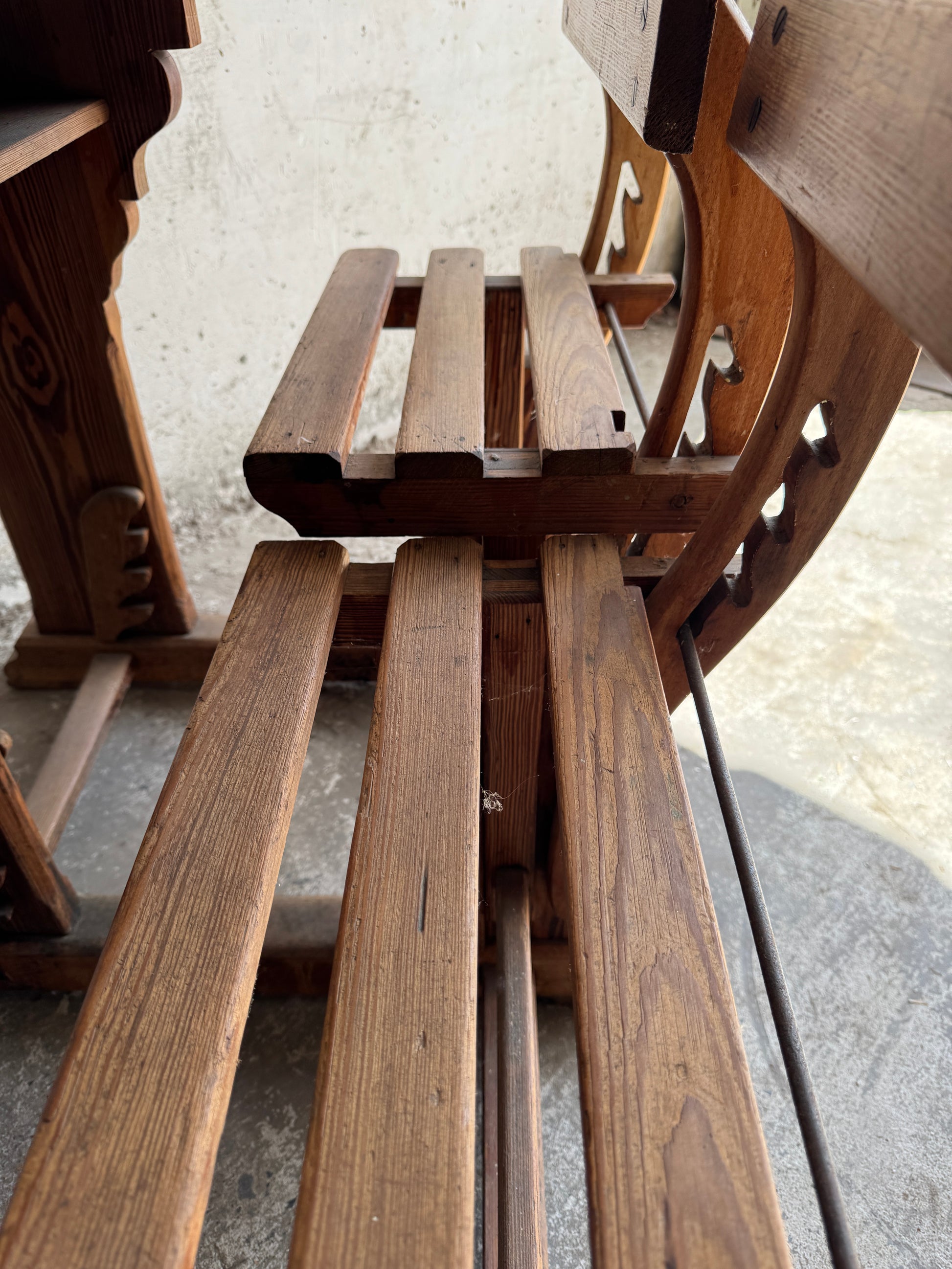 Met zijn eenvoudige verbindingen, zacht gebogen rugleuningen en verouderde patina is het een prachtig decoratief element in kinderkamers, creatieve studio's of rustieke interieurs.