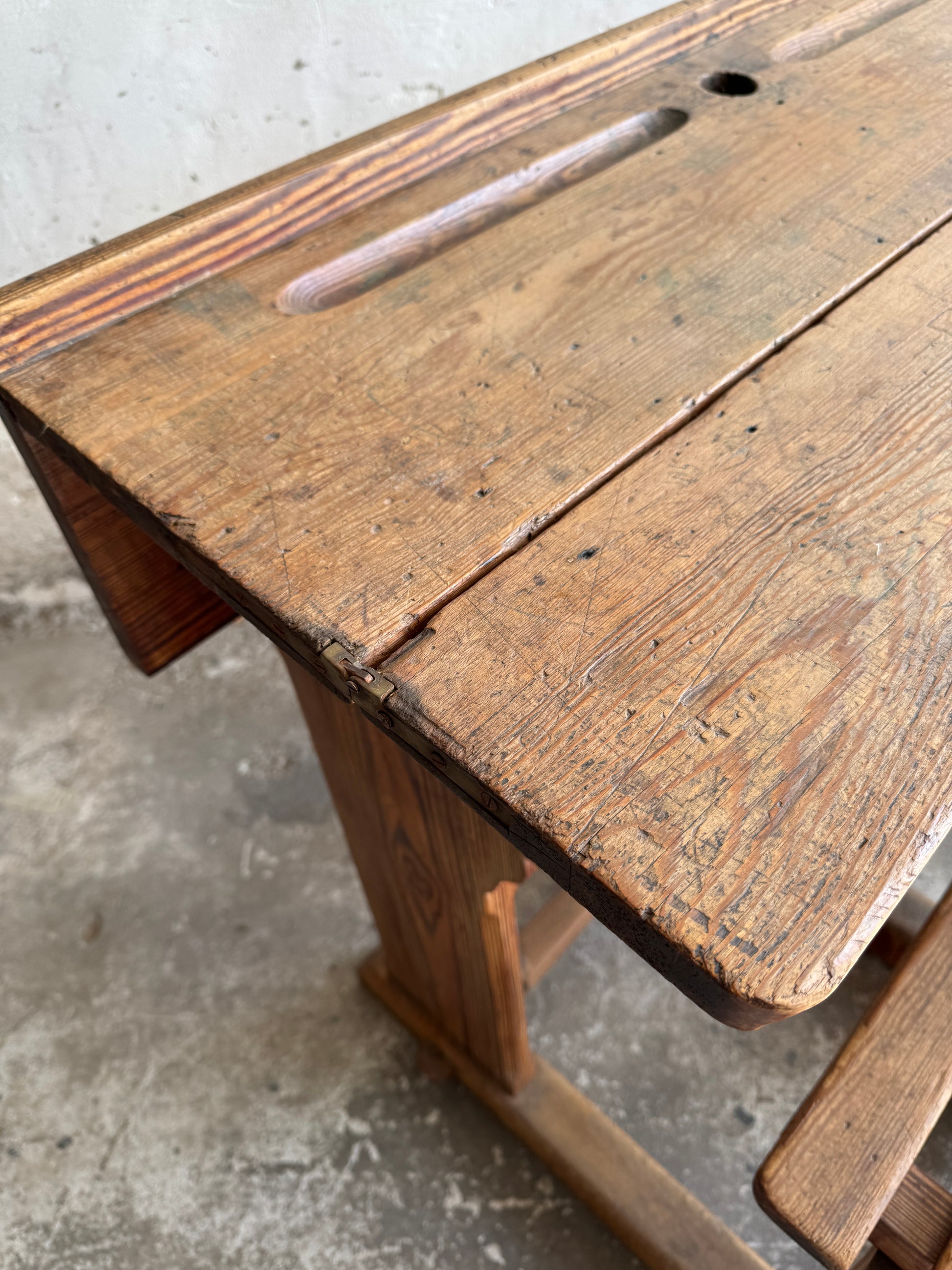 Antiek houten schoolbankje met twee bankjes – begin 20e eeuw