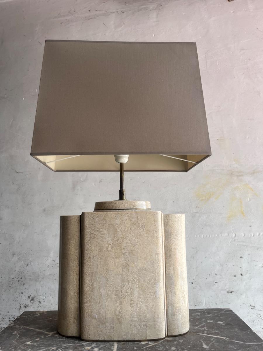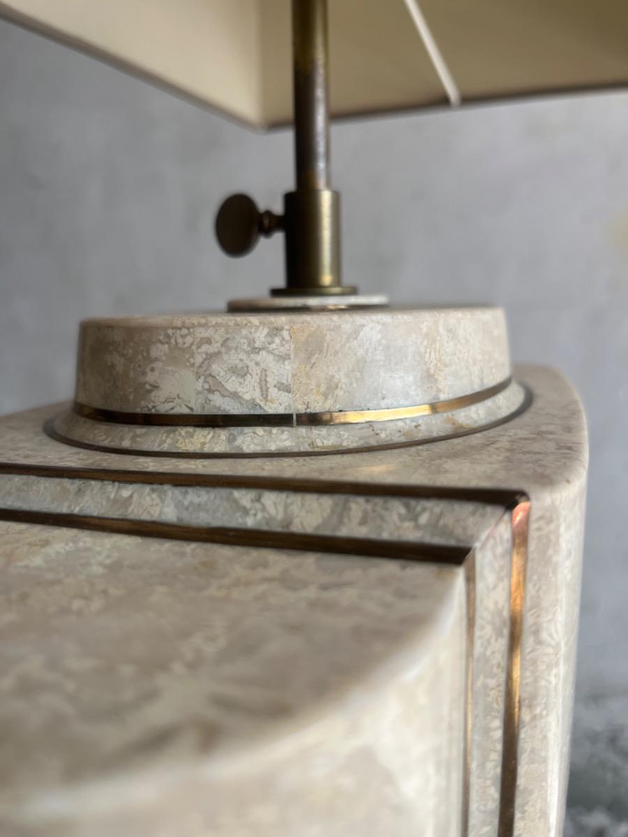 Vintage design architecturale tafellamp in travertijn en messing stijl Maison Jansen, jaren 70