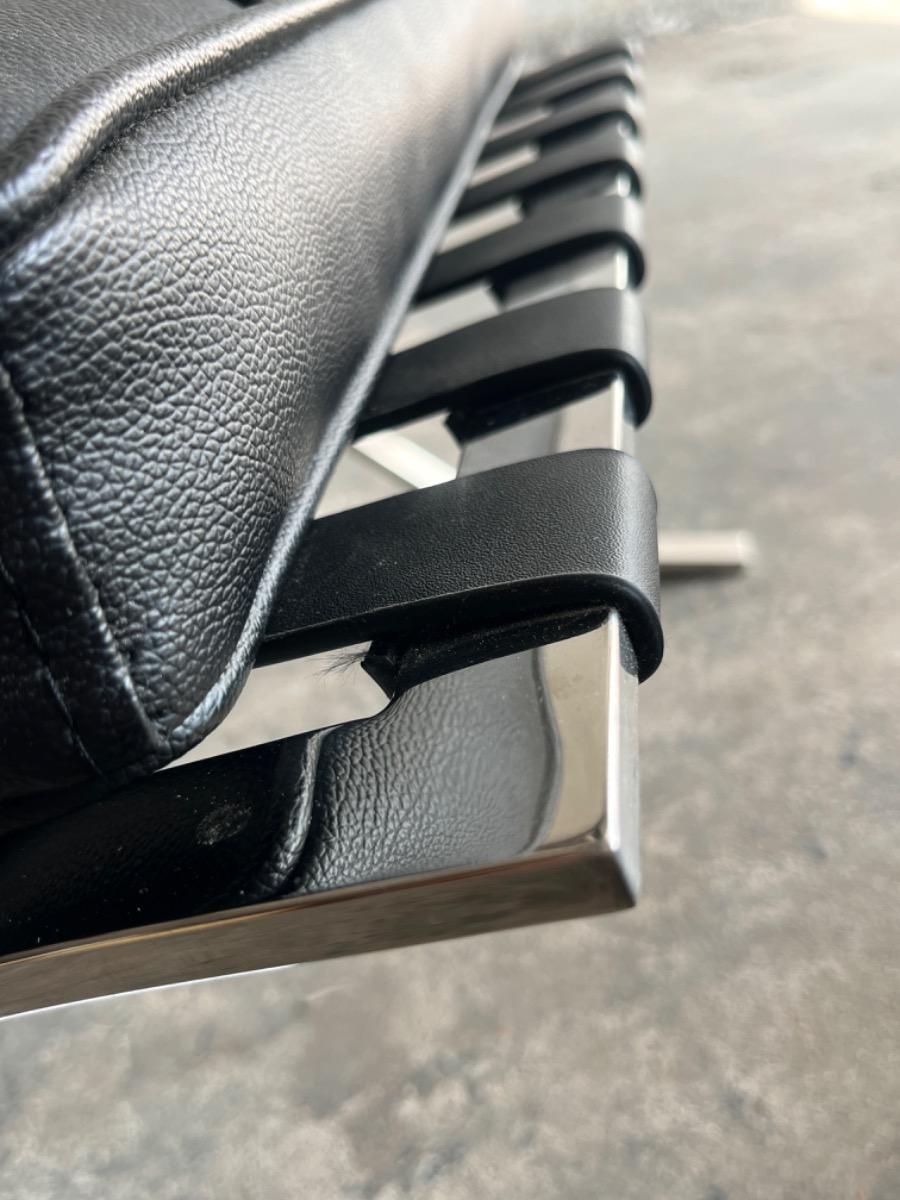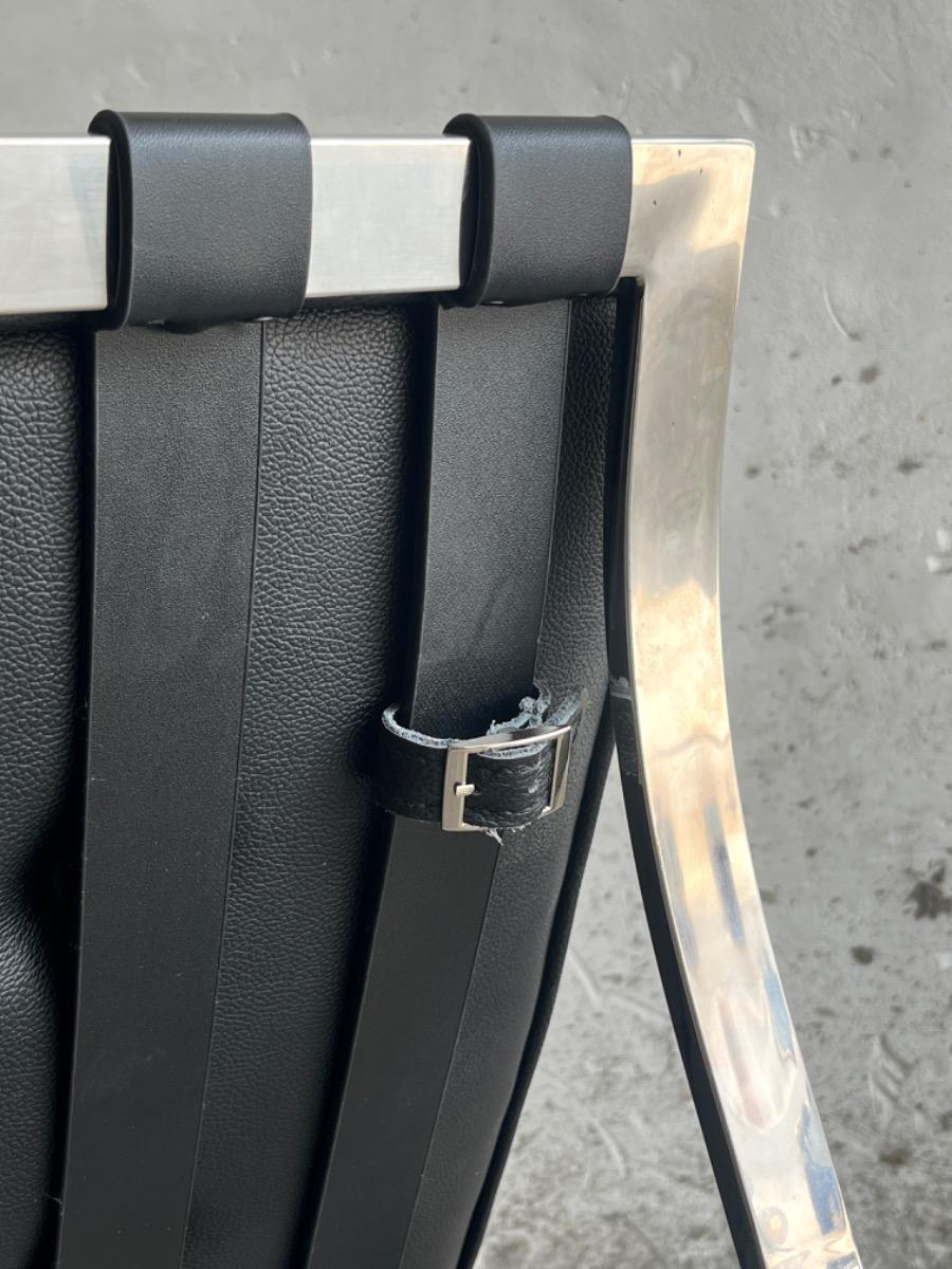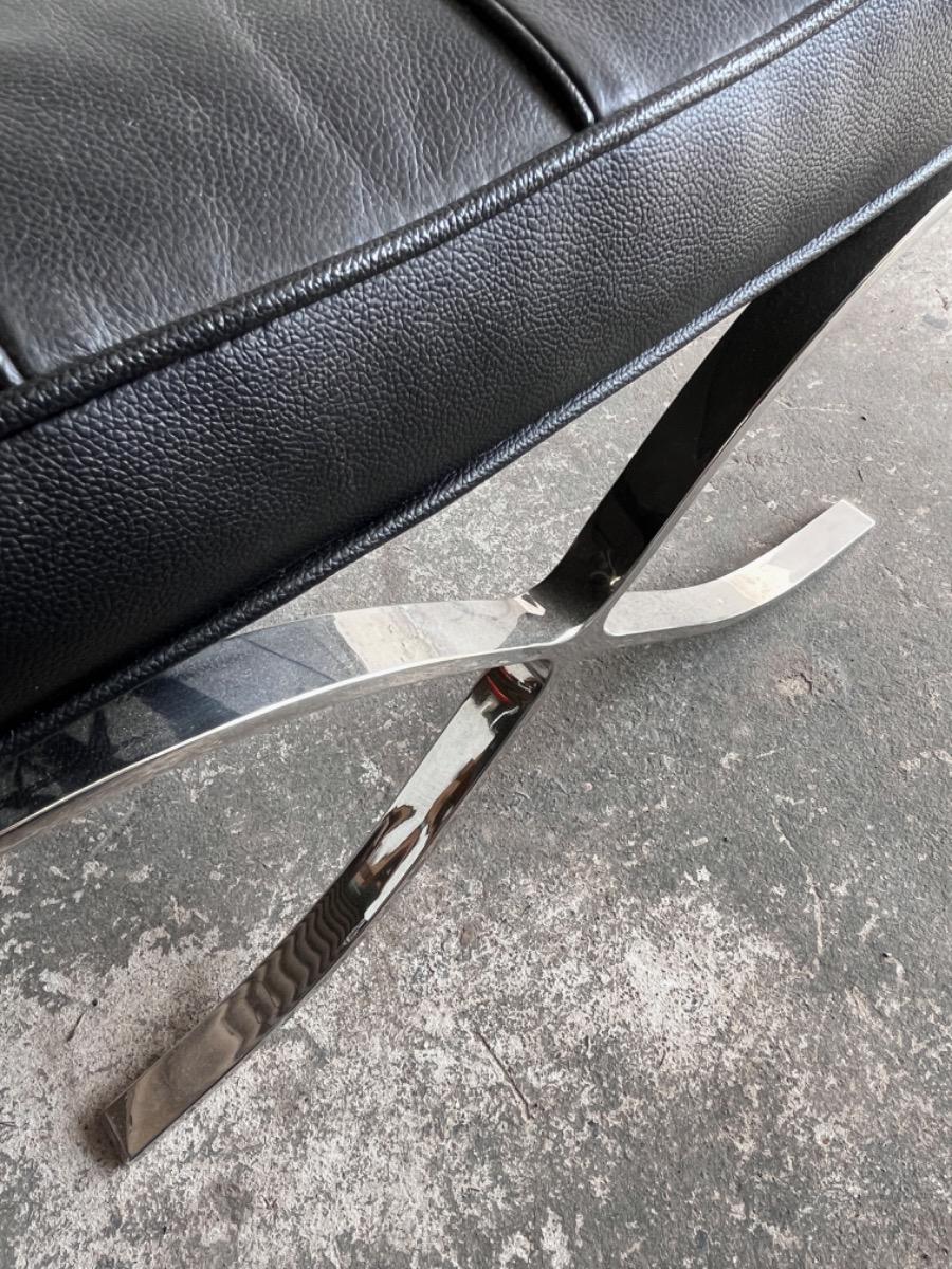 Barcelona poef in zwart leer en chroom (naar ontwerp van Mies van der Rohe)