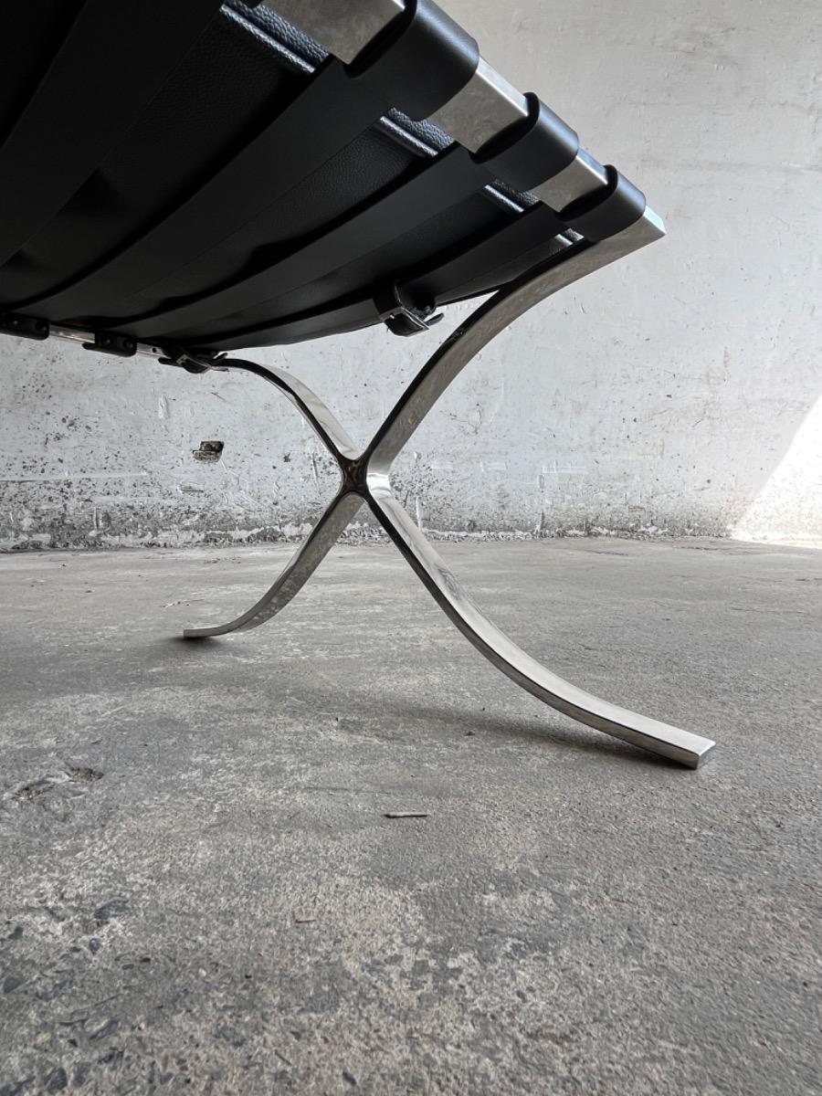 Barcelona ottoman in zwart leer en chroom (naar ontwerp van Mies van der Rohe)