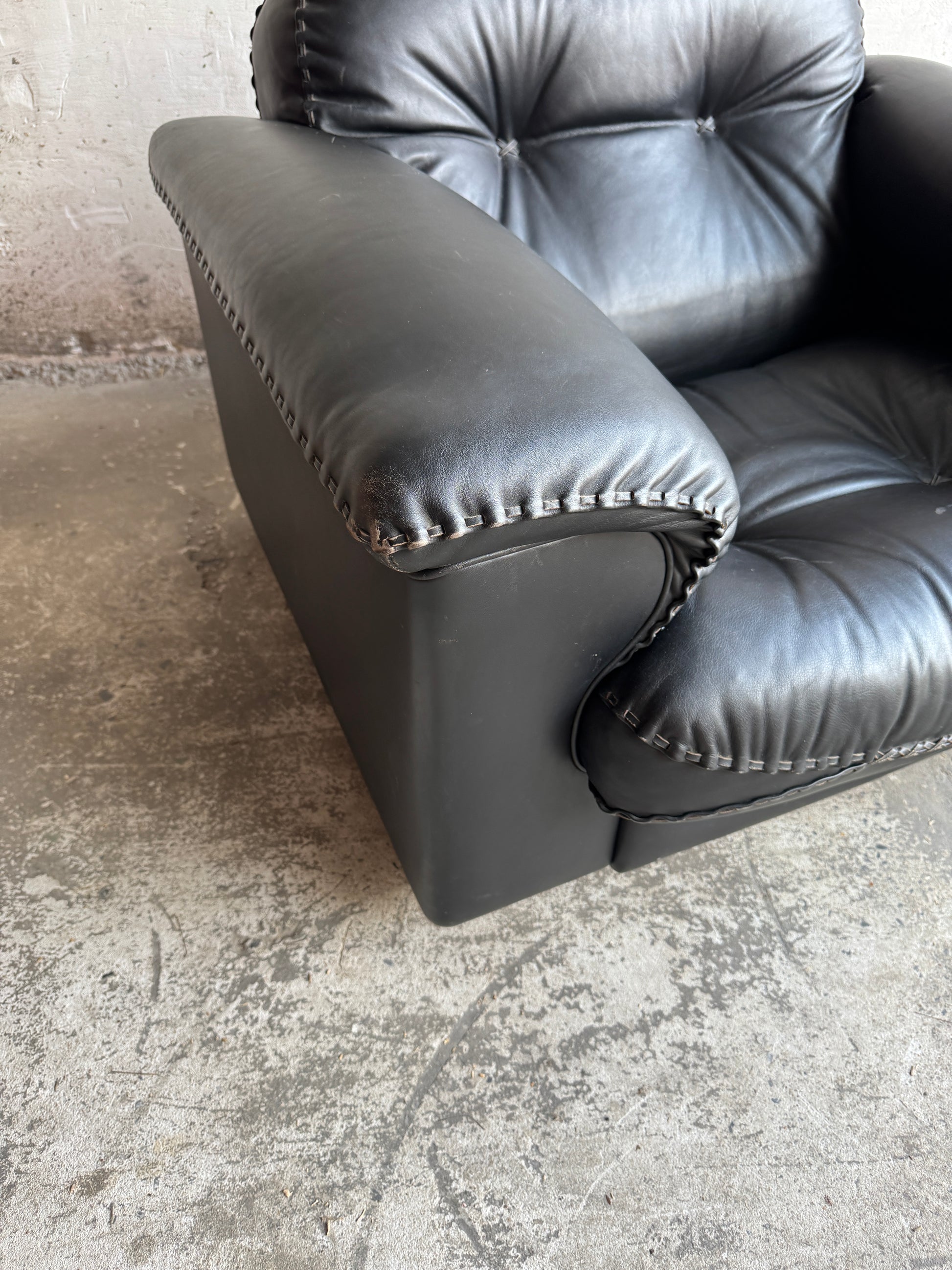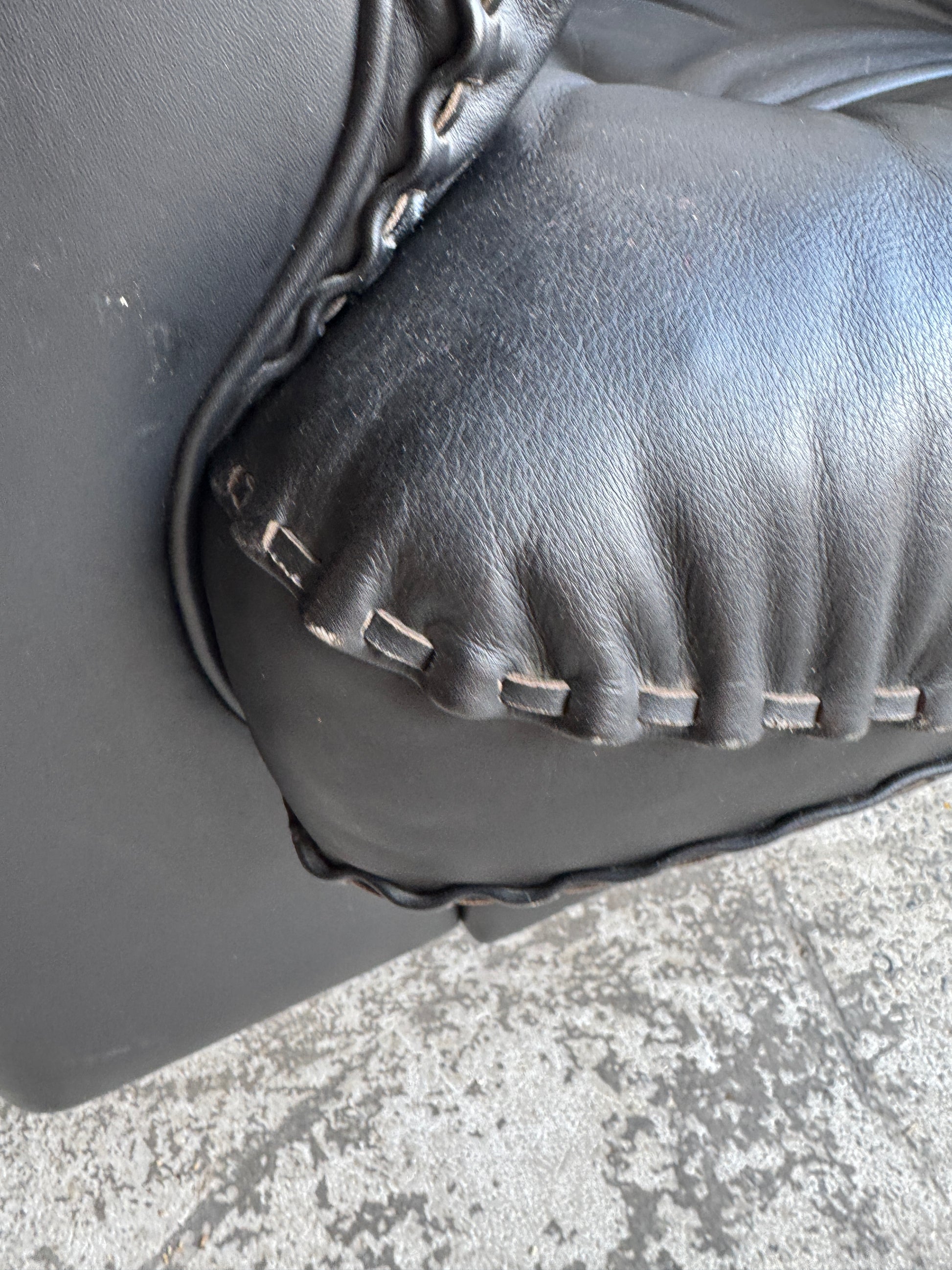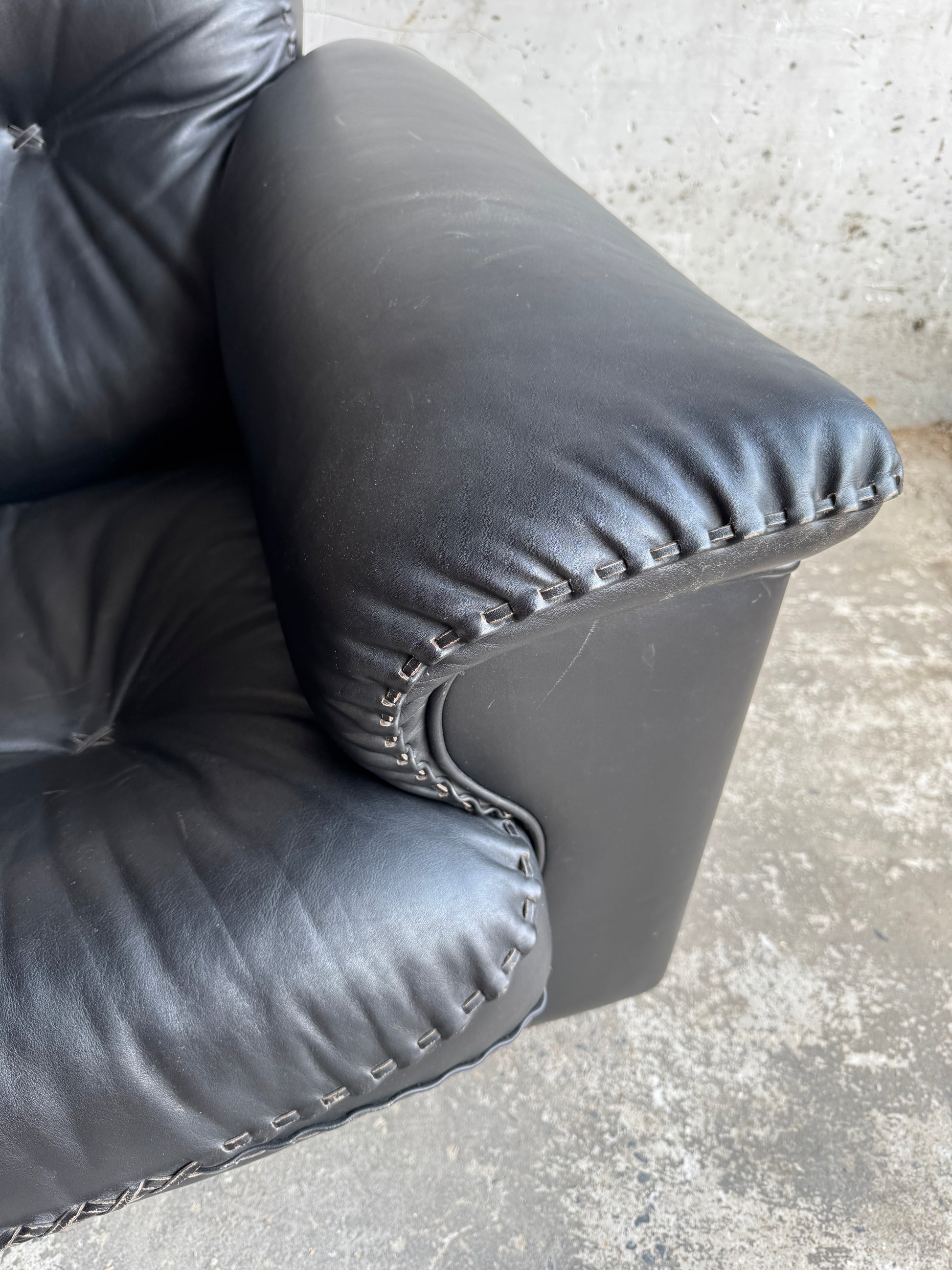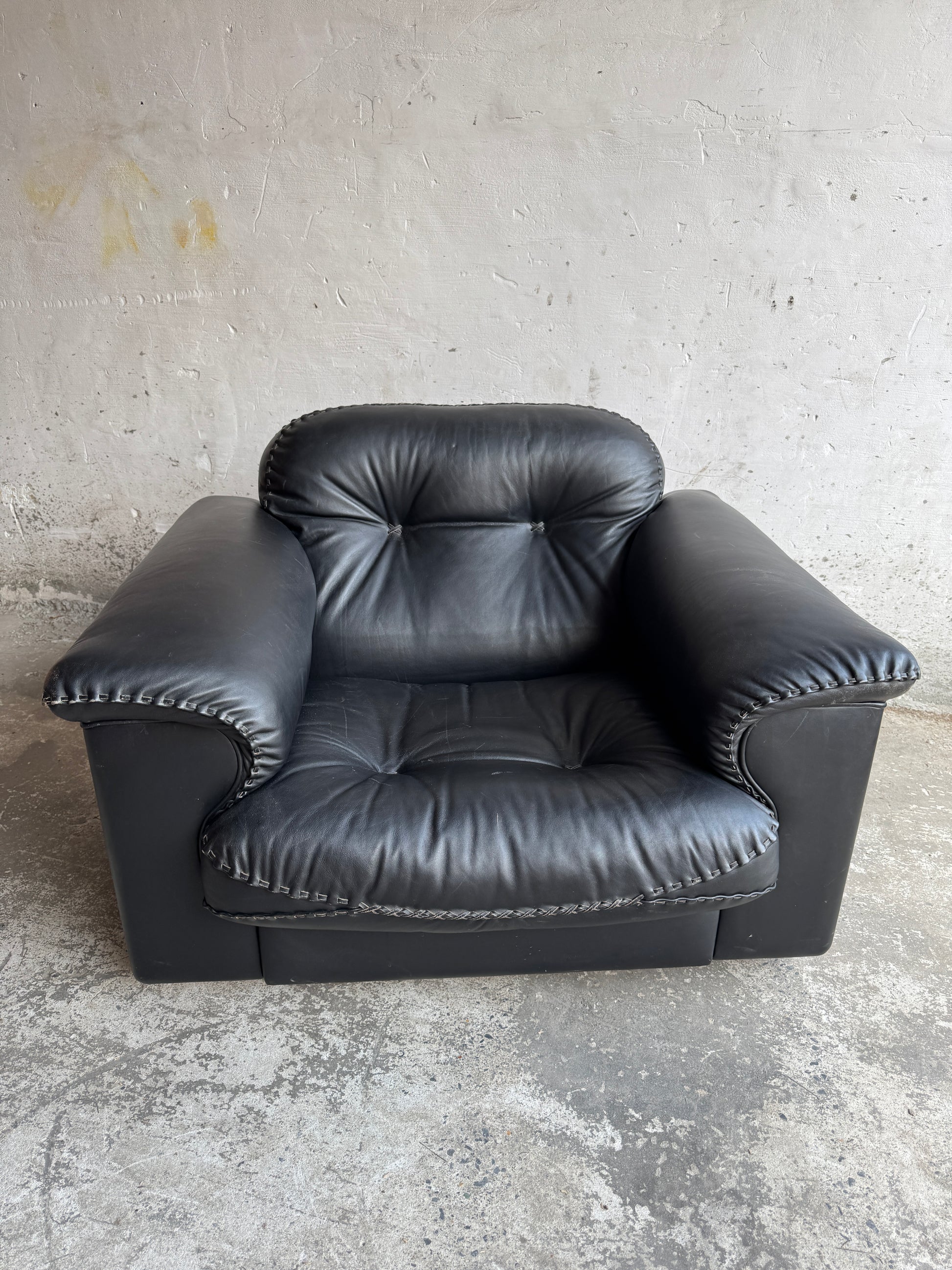 The DS-101 is designed with deep cushioning, wide armrests, and a reclining mechanism that enhances comfort. Its supple black leather with signature braided seams creates a bold yet refined aesthetic. A timeless piece that blends luxurious craftsmanship with modernist style.