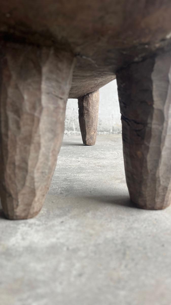 Dit indrukwekkende stuk is een traditioneel Afrikaans bed, volledig met de hand uit één massief stuk hout gesneden. De organische vormen, ruw bewerkte poten en asymmetrische details geven het een monumentale, haast sculpturale uitstraling.