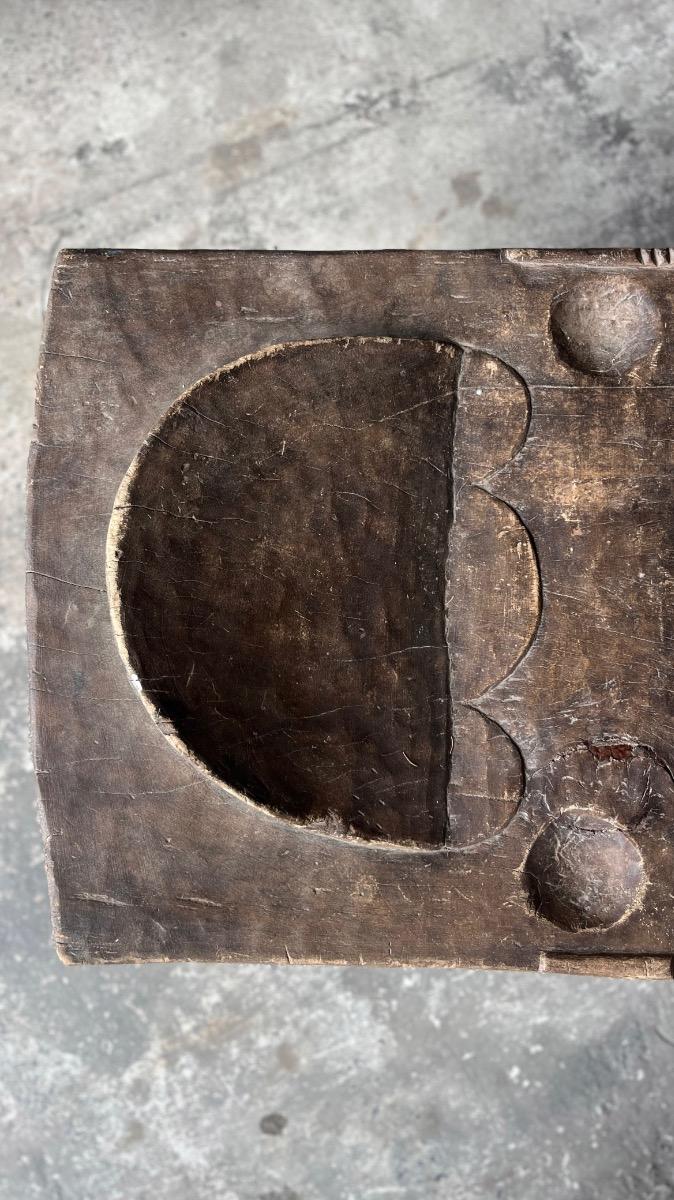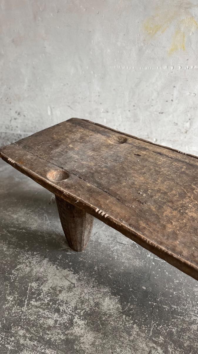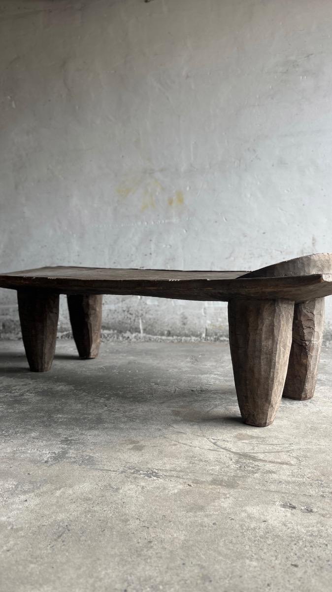 Oorspronkelijk gebruikt als rust- of slaapmeubel, leent dit object zich vandaag perfect als lage bank, displaytafel of kunstzinnig punt in een interieur of galerie. Een zeldzaam en krachtig voorbeeld van authentiek Afrikaans vakmanschap.