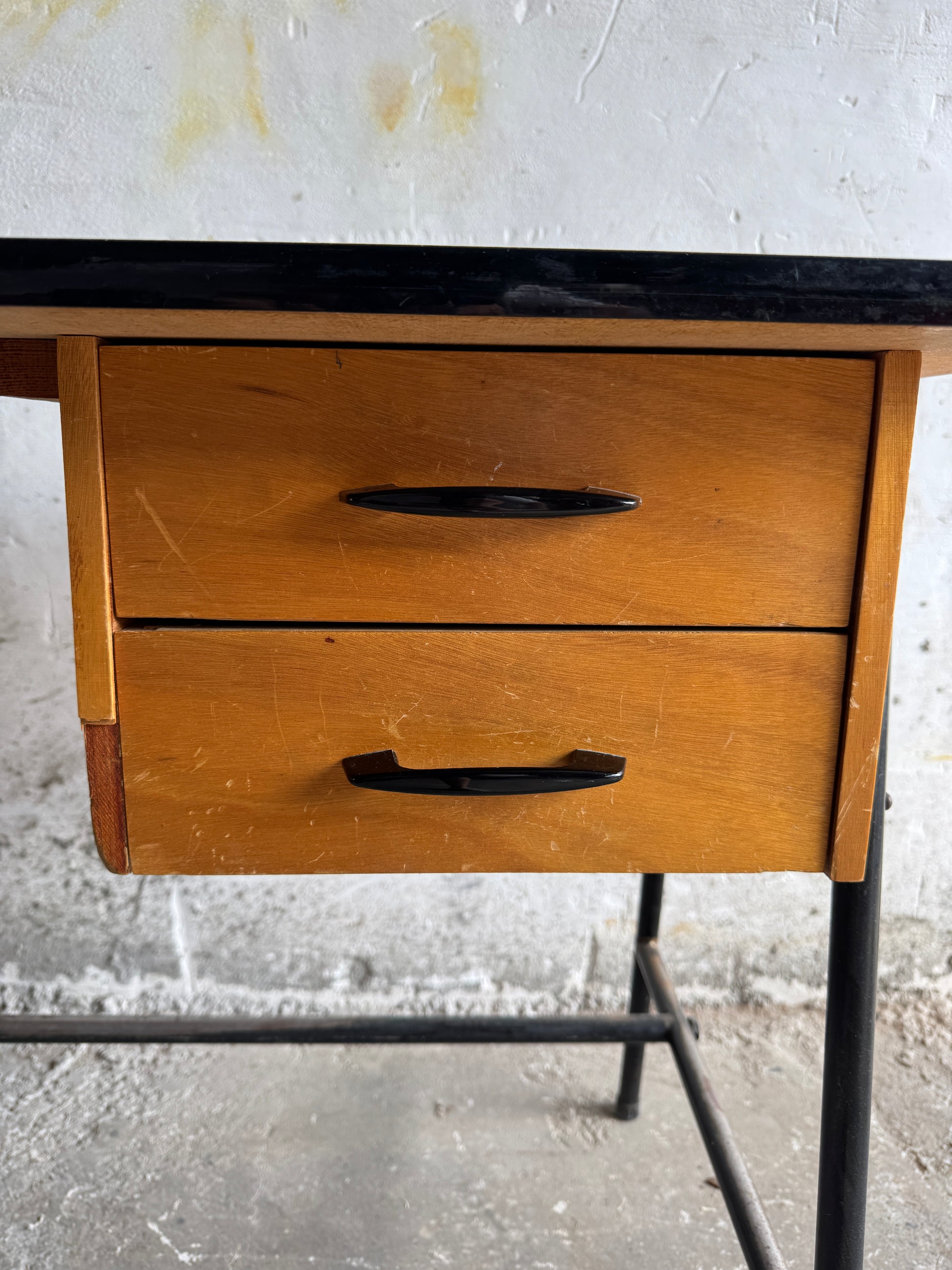 Industrieel bureau uit het midden van de eeuw met twee lades