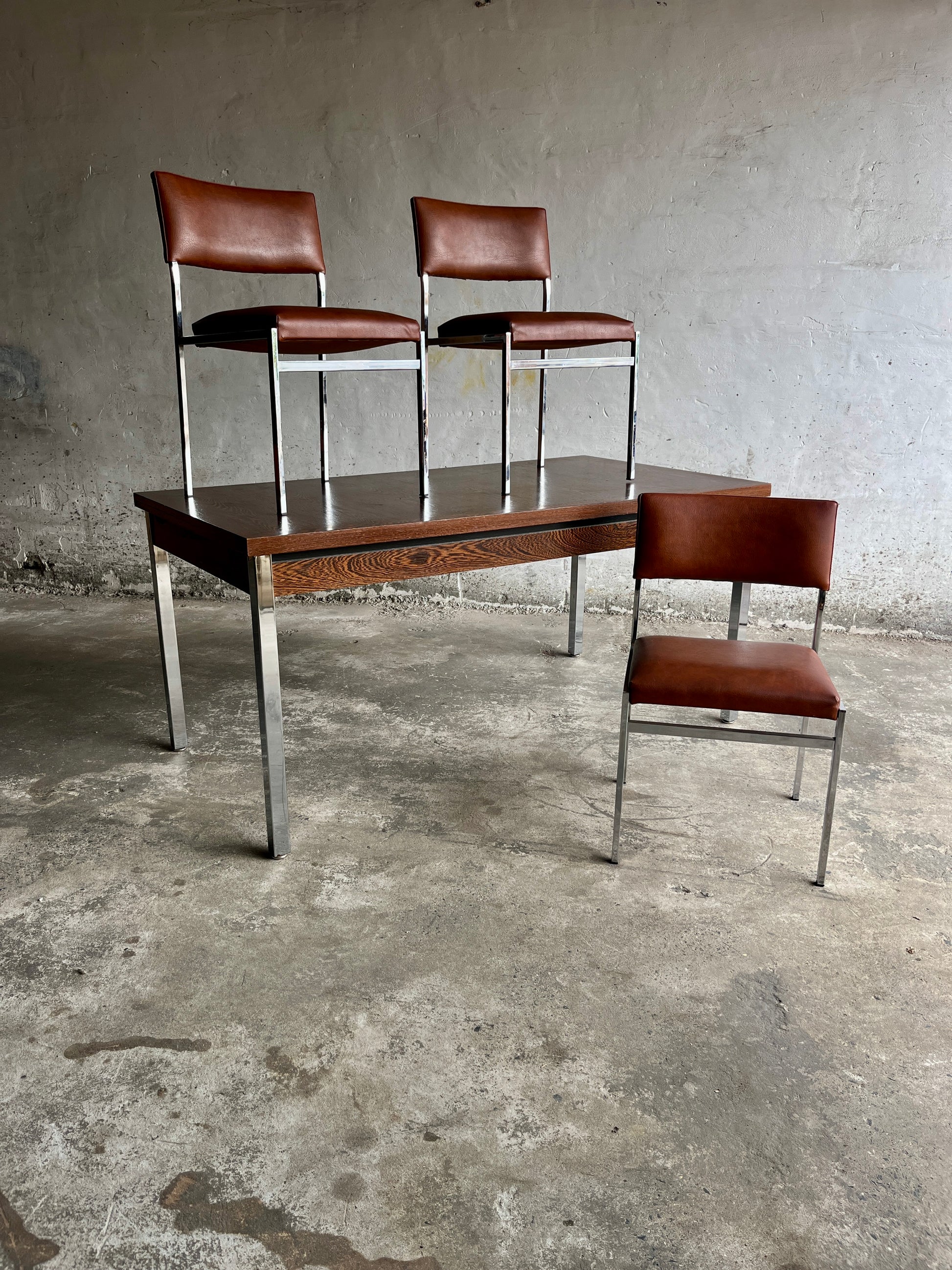 Mid-Century Belgian Dining Table with Chrome Legs