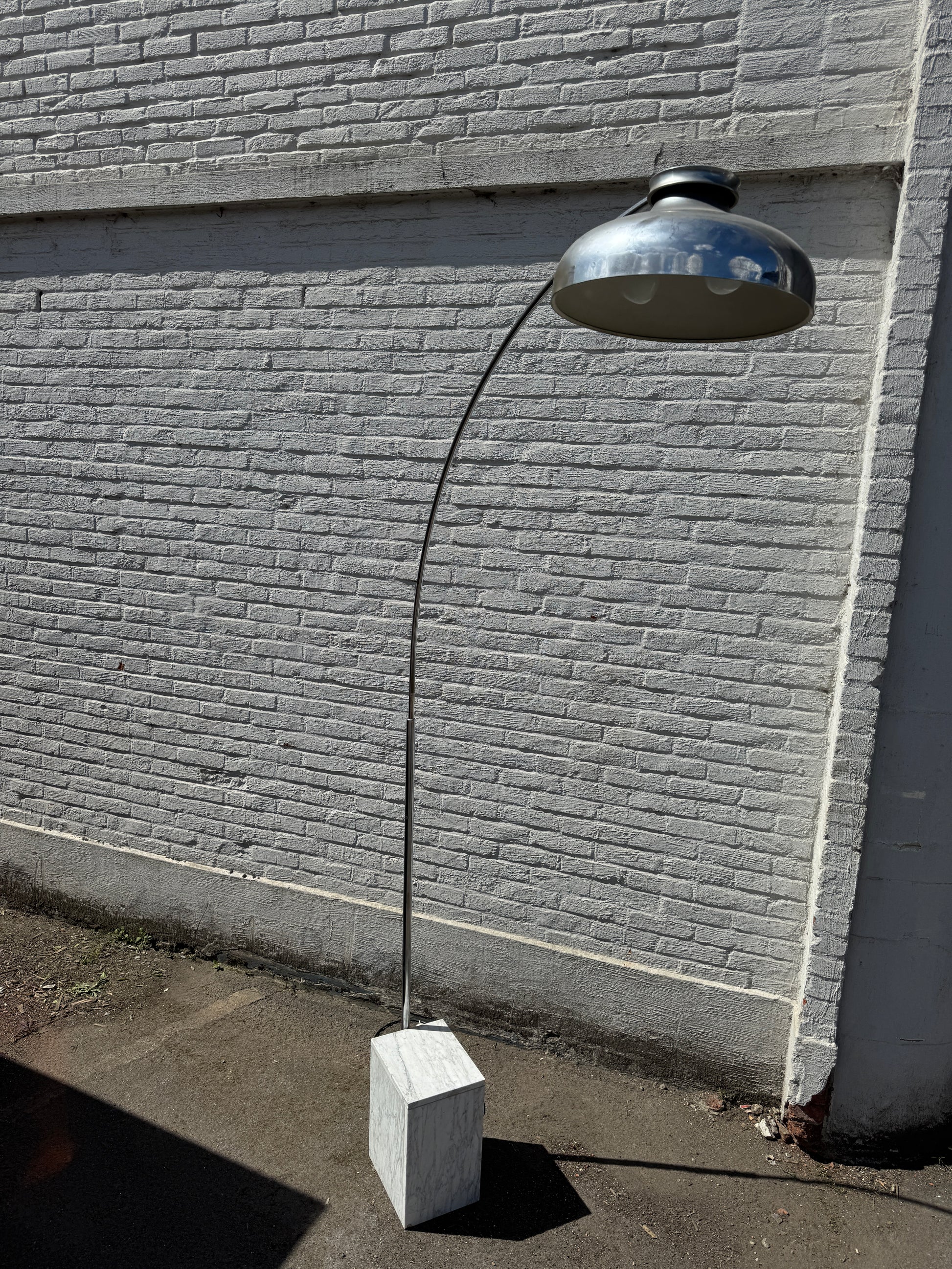Extra grote Italiaanse boogvormige vloerlamp met marmeren voet – jaren 70 design