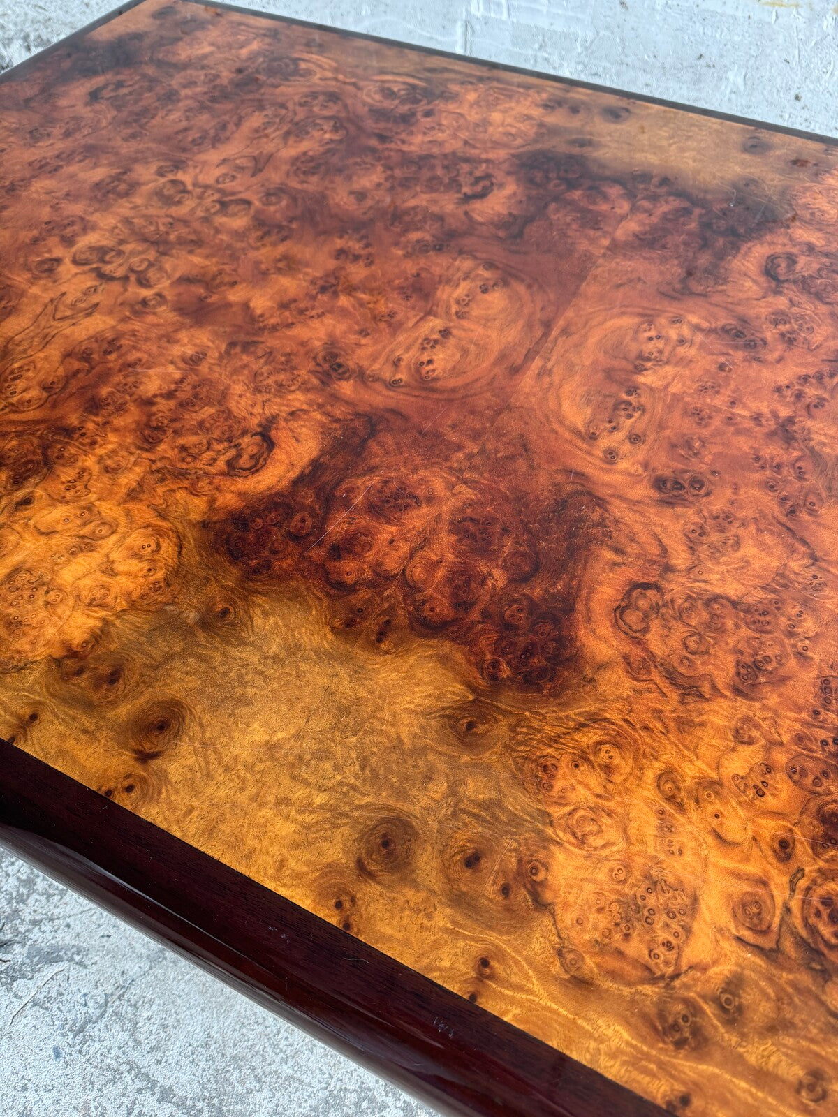 Stijl en functionaliteit Het spiegelende oppervlak en het levendige houtpatroon zorgen voor een glamoureuze uitstraling, typerend voor de Franse designstijl uit de jaren 70. Een statement piece voor een stijlvol, vintage of Hollywood Regency interieur.