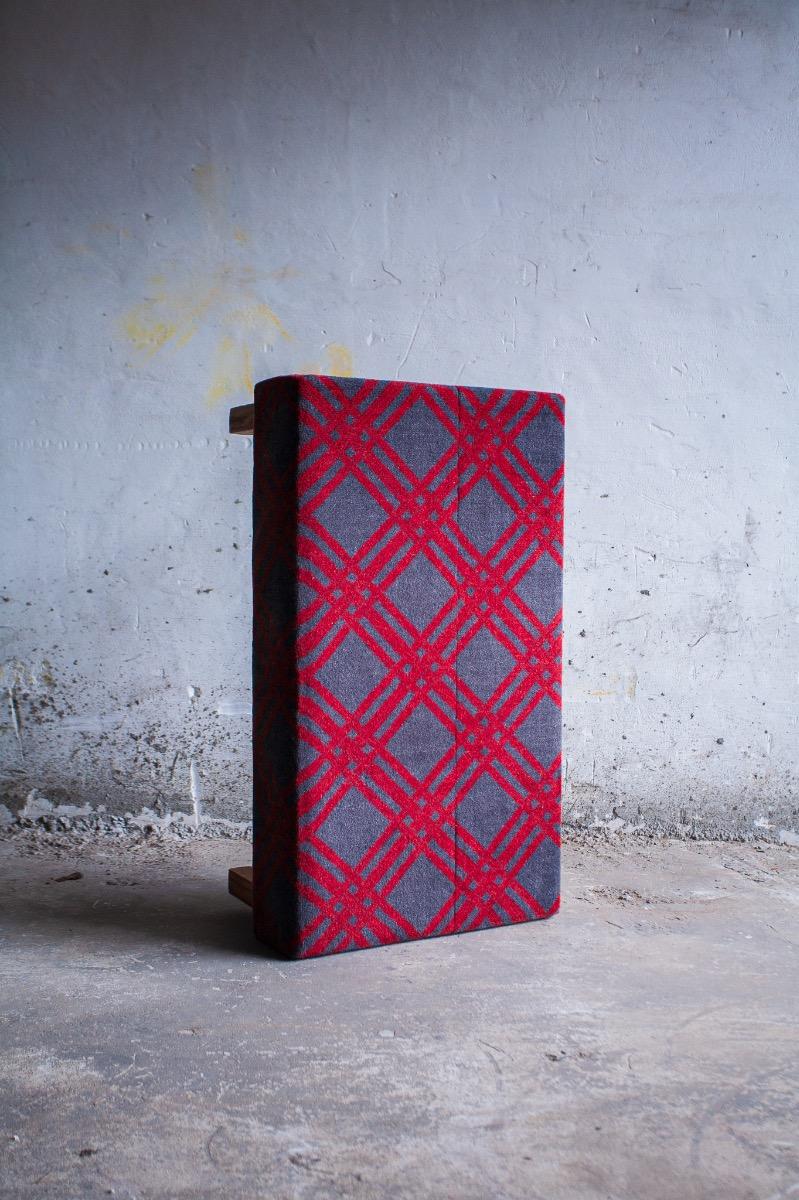 Deze opvallende bank is bekleed met klassieke Schotse tartanstof in rood en donkergrijs en rust op een stevig houten frame. Een charmant meubelstuk dat comfort en karakter combineert in één opvallend ontwerp.