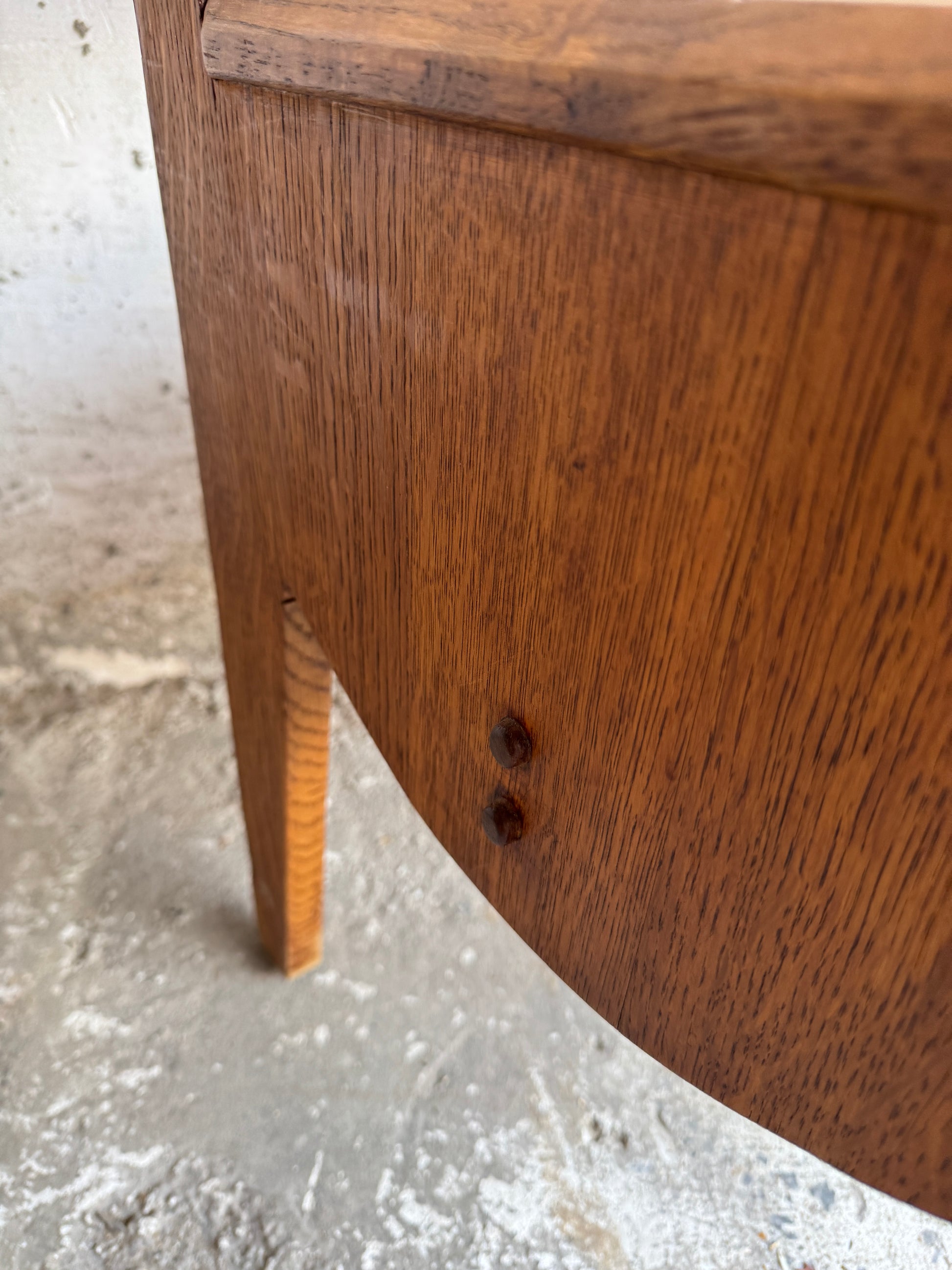 A rare set of 6 dining chairs in the style of the Dutch Amsterdamse School, crafted in solid wood around the 1920s–1930s. With their high backs and elegant geometric proportions, these chairs reflect the expressive Art Deco aesthetic for which the Amsterdamse School movement is celebrated.