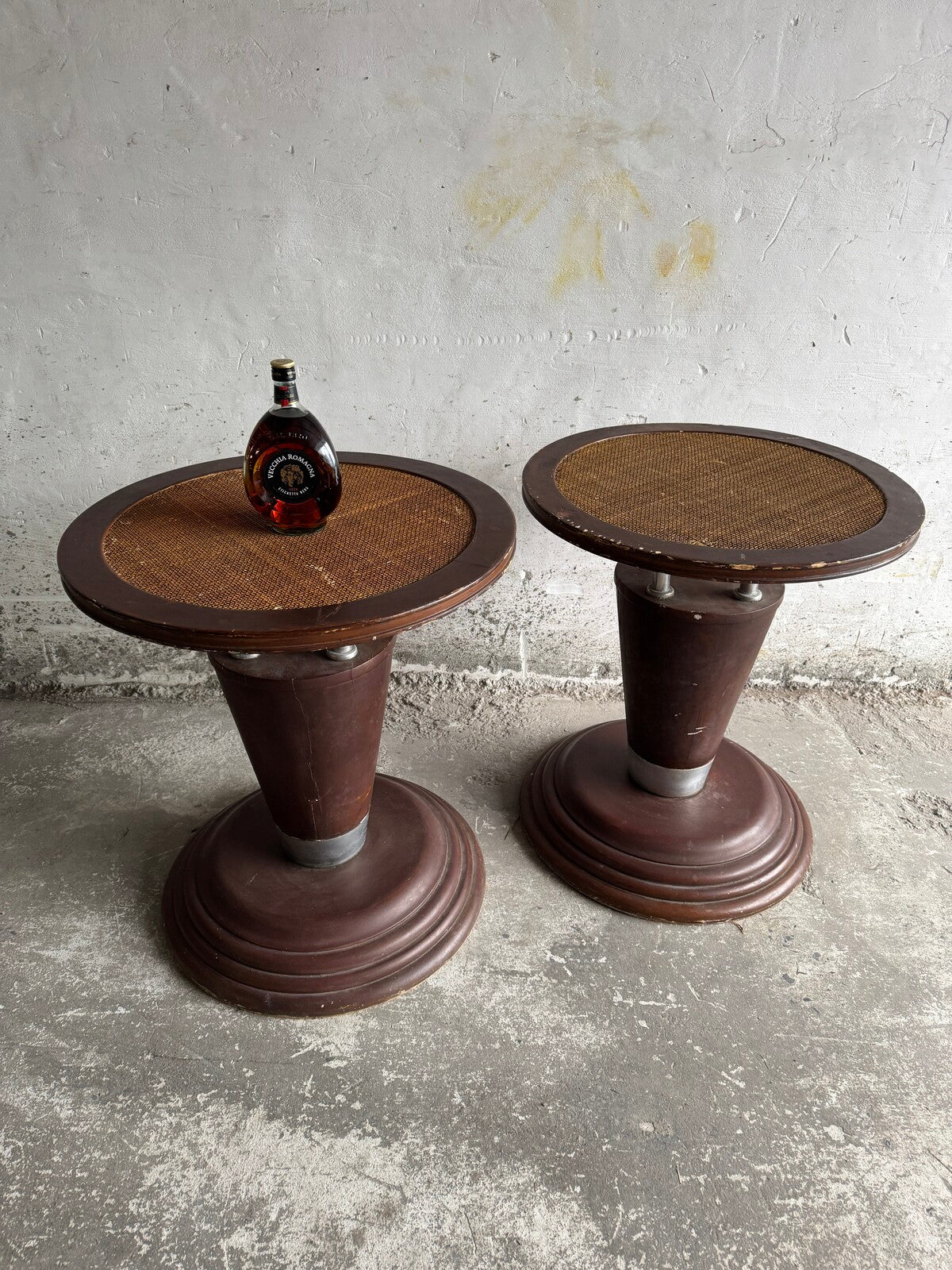 Set van 2 Art Nouveau bijzettafels met geweven blad