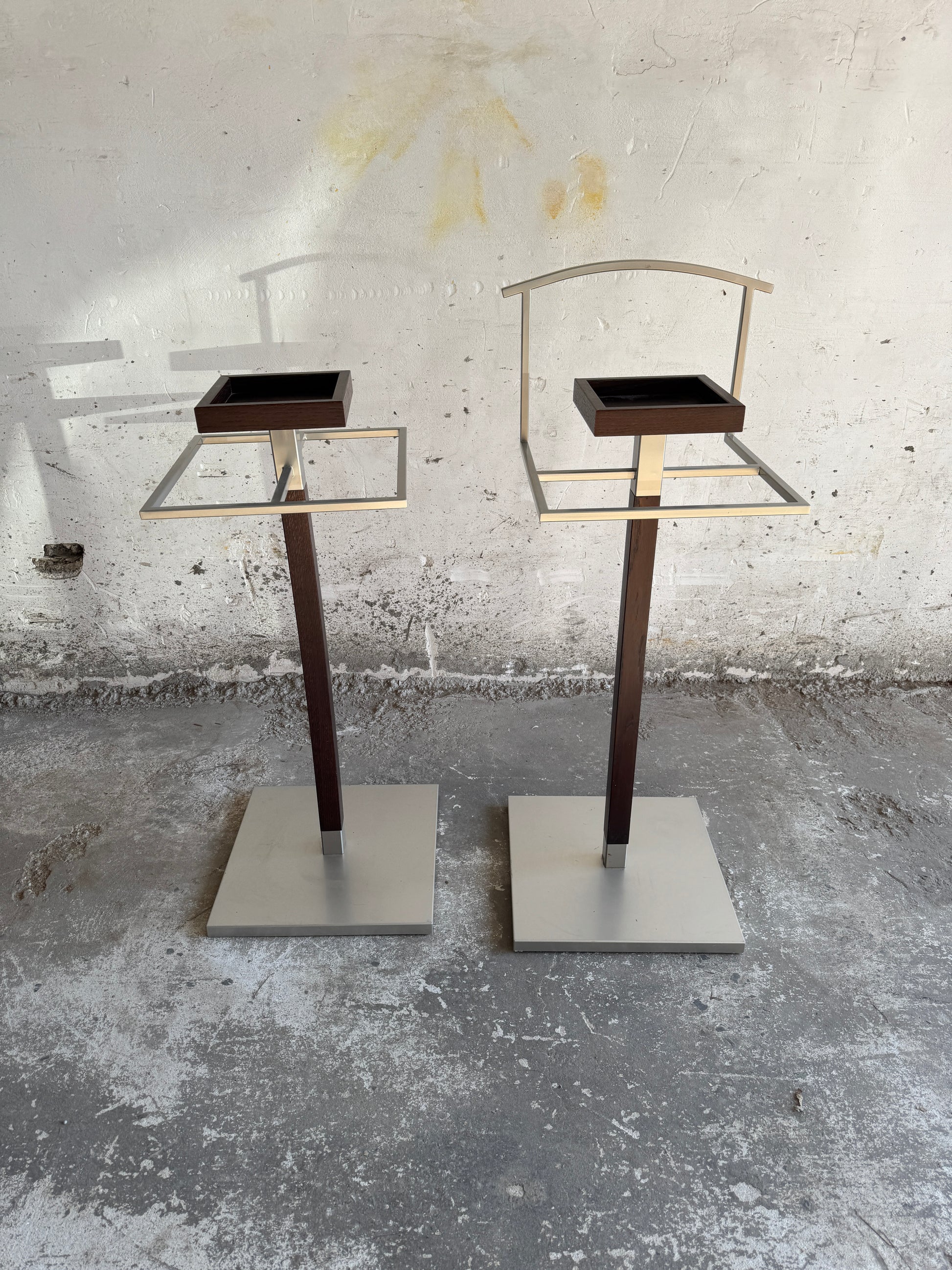 Stijlvolle set van Calligaris bestaande uit een moderne kostuumhouder en een karakteristieke parapluhouder. Een zeldzaam Italiaans designstuk dat zowel praktisch als sculpturaal is — ideaal voor de hal, slaapkamer of dressing.