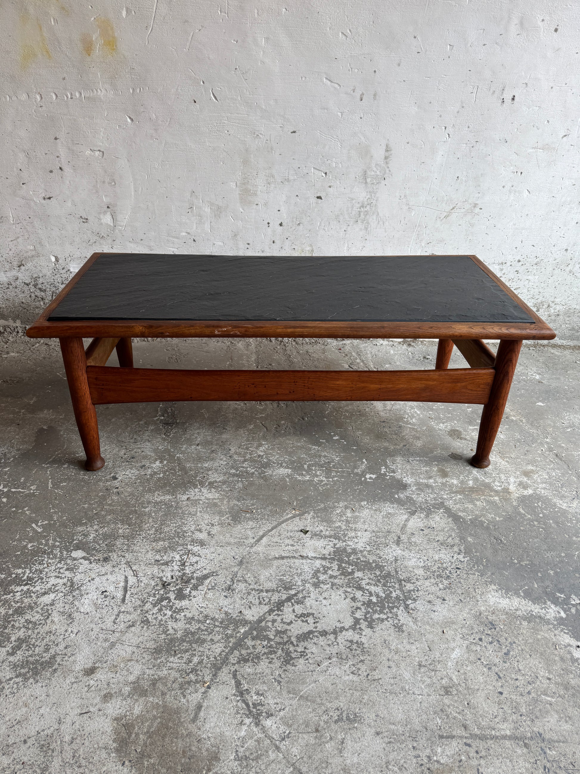 Vintage coffee table featuring a solid oak frame and a natural slate top—timeless, durable, and easy to style in any living space.
