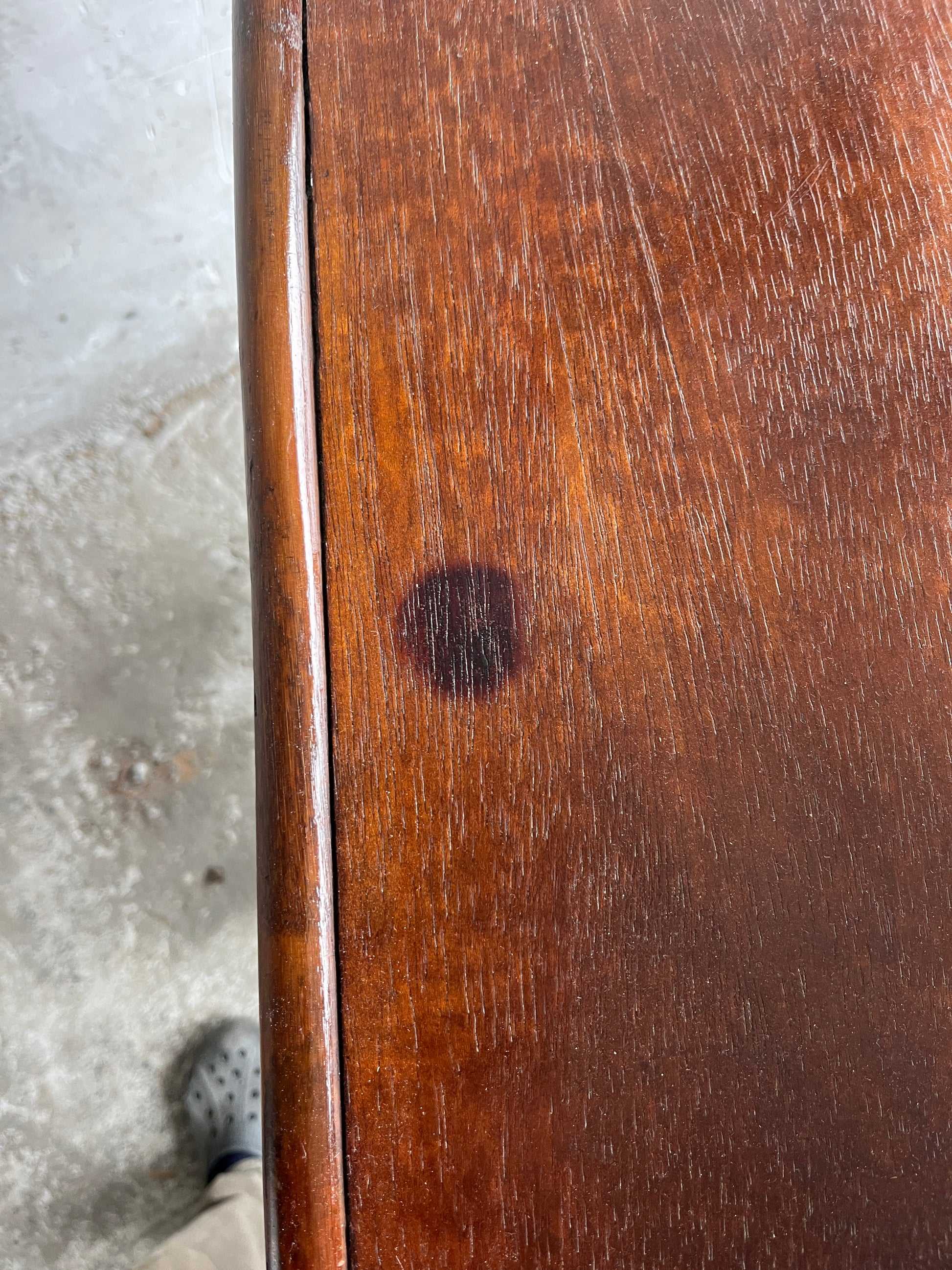 • Condition: Good vintage condition with visible wear consistent with age. A small dark stain is present on one shelf (see close-up photo).