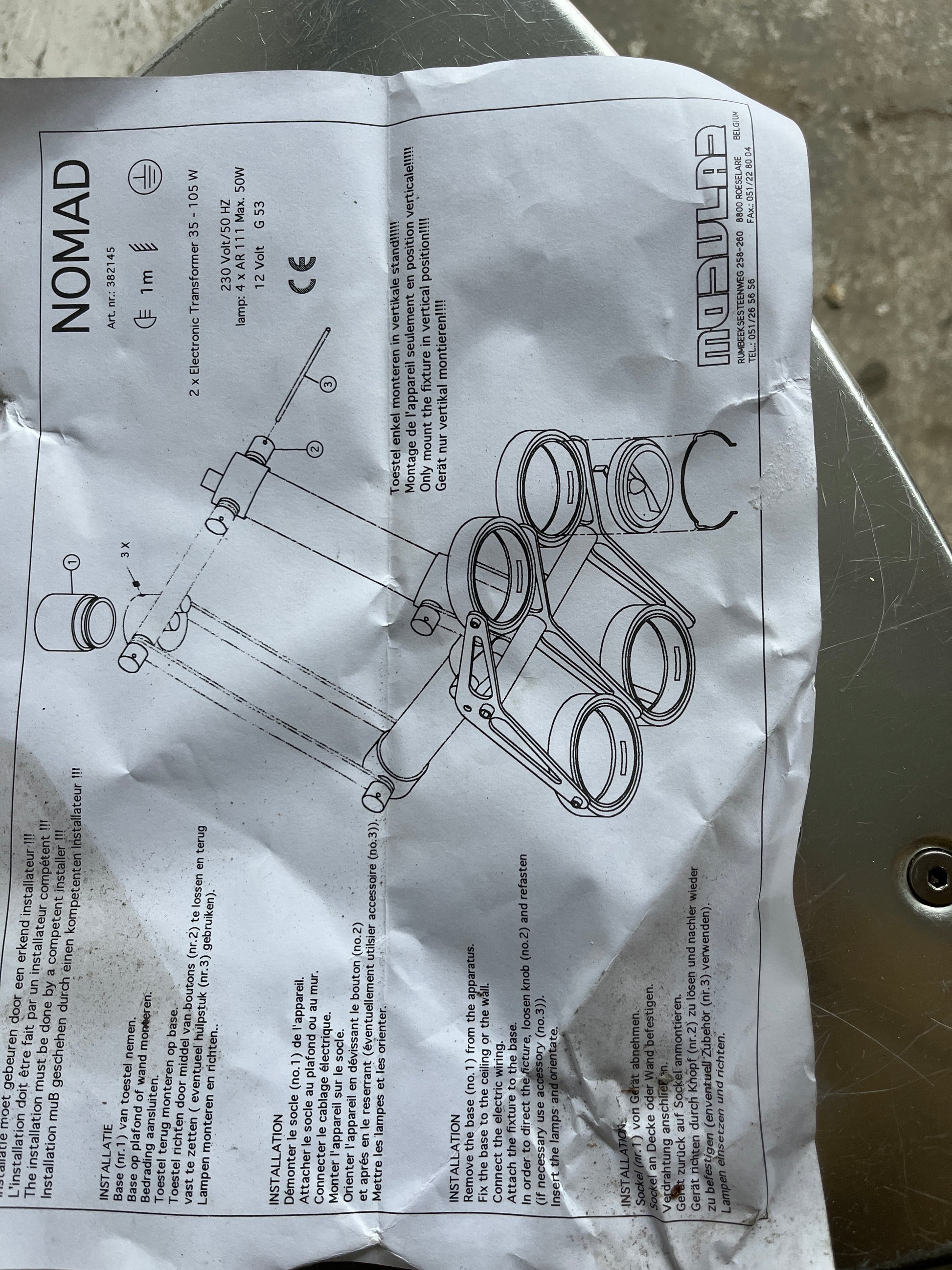 An iconic Nomad ceiling light by Modular Lighting Instruments, Belgium. This sculptural fixture combines industrial aesthetics with a highly technical, adjustable construction—designed for architectural interiors where light direction and presence matter.